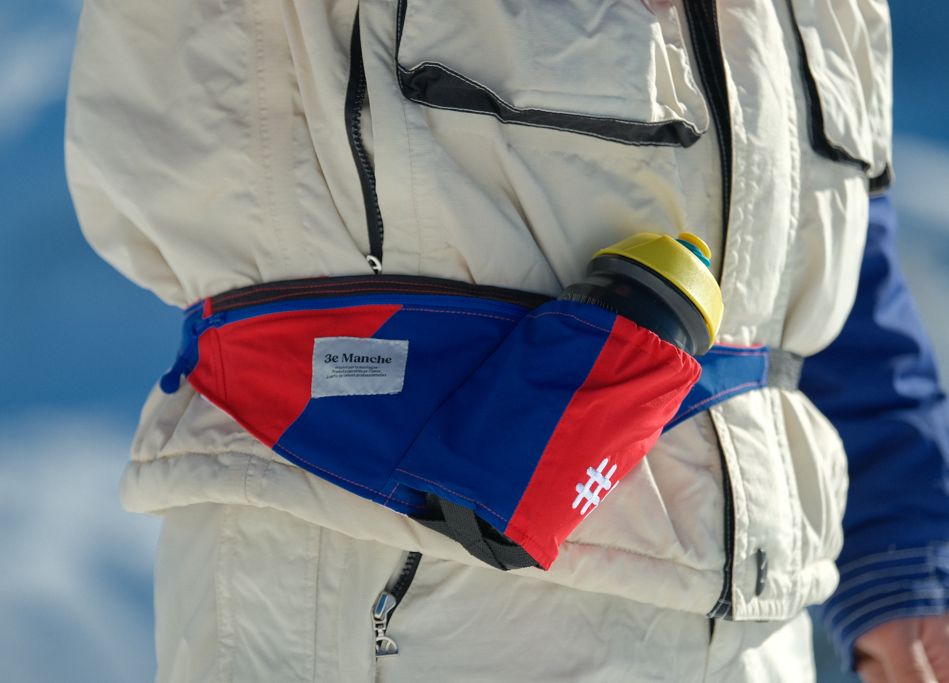 Chaque porte-gourde est fabriqué à partir d’anciennes tenues de moniteurs de ski, pisteurs, athlètes… revalorisées dans notre atelier partenaire à Chambéry, au cœur des Alpes. Grâce à l’upcycling, chaque pièce est unique, avec ses variations de couleurs et de textures qui reflètent la première vie du textile.