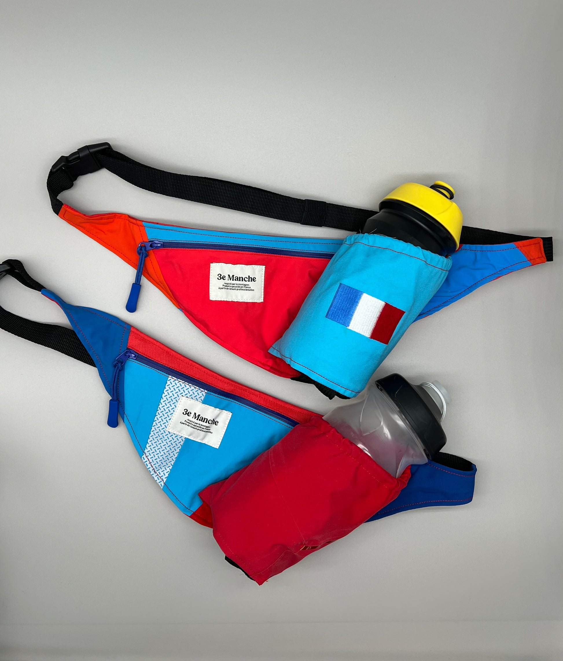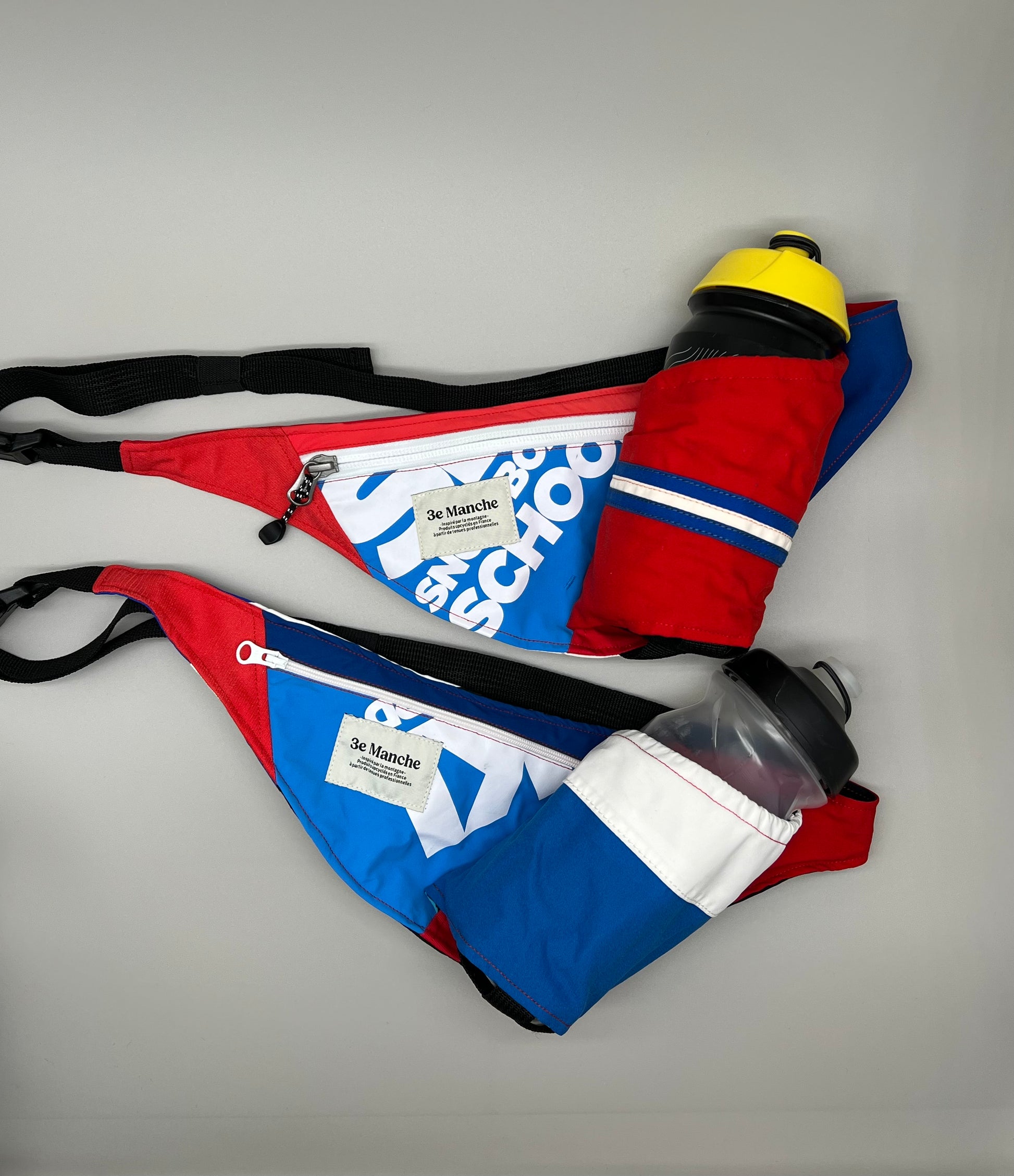 Chaque porte-gourde est fabriqué à partir d’anciennes tenues de moniteurs de ski, pisteurs, athlètes… revalorisées dans notre atelier partenaire à Chambéry, au cœur des Alpes. Grâce à l’upcycling, chaque pièce est unique, avec ses variations de couleurs et de textures qui reflètent la première vie du textile.